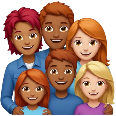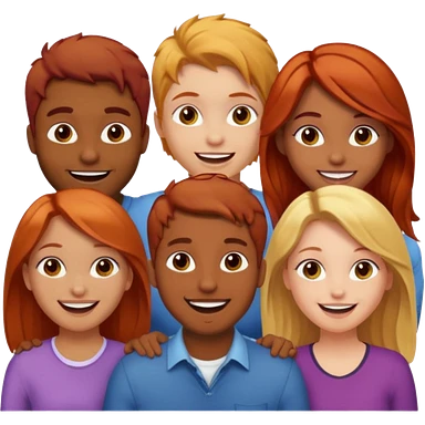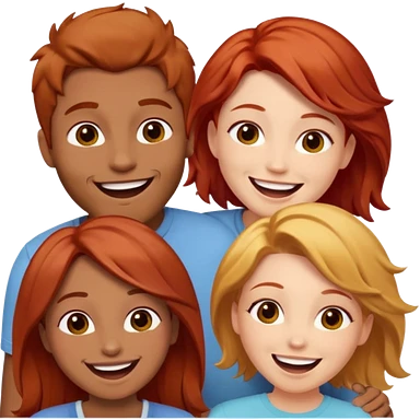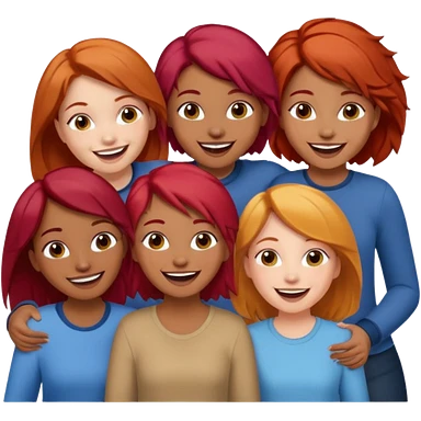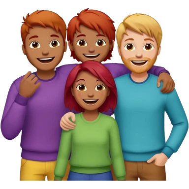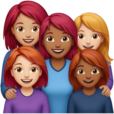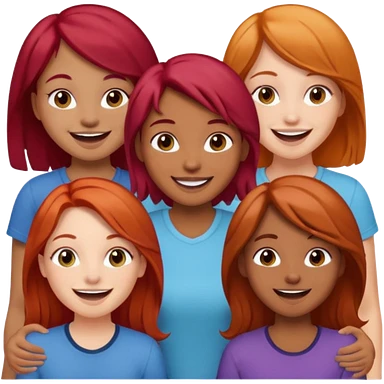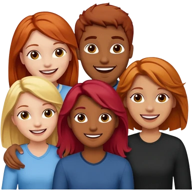 4 inclusive friends (3 girls and 1 man) laughing : 1 man must be brown, 1 girl have to have red hair, an other one must have blond hair and the last one is brown and have brown hair emoji