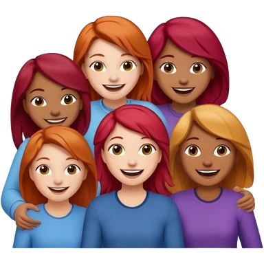 6 girls, 1 brunette, 3 long hair blondes, 1 redhead and 1 short hair blonde all Caucasian emoji