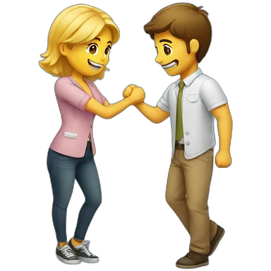 A female and male giving each other a handshake while dabbing emoji