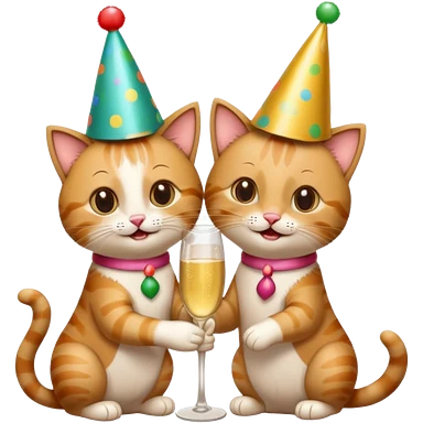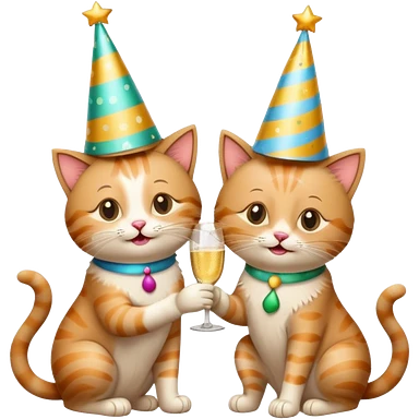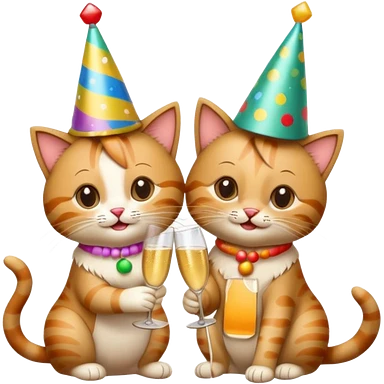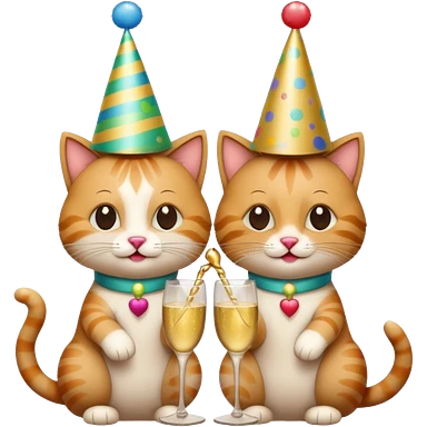 2 happy cats drinking champagne wearing party hats emoji