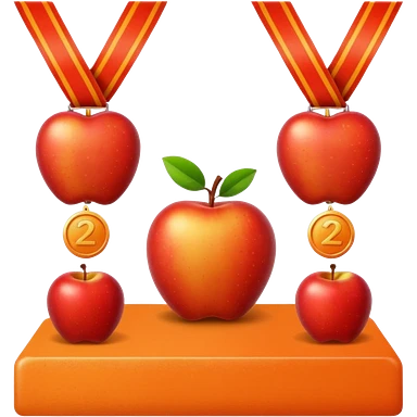 medal podium where 2nd and 3rd place are apples and 1st place is an orange emoji