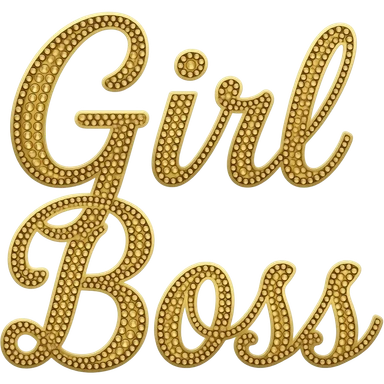 Le mot Girl Boss en strass doré. La vue est en 3/4 Ajoute subtilité pour renforcer l'impression de luxe de la scène. L'ensemble est isolée sur un fond blanc. emoji