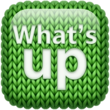a green square with rounded corners logo of the "What's up" which is made of wool emoji