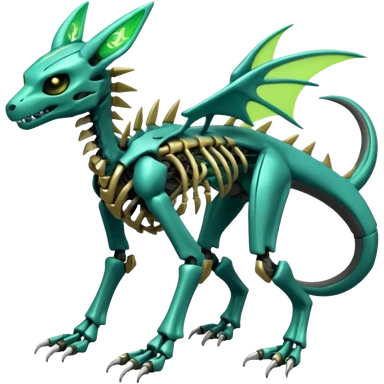 futuristic neon-like-green Skeleton-Cyborg-Manectric-Electrike-Salandit-Cubone-Umbreon-Marowak-Draco-Fakémon-hybrid-creature (full body), 4 legs emoji