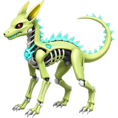 futuristic neon-like-green and yellow Skeleton-Cyborg-Manectric-Electrike-Salandit-Cubone-Umbreon-Marowak-Draco-Fakémon-hybrid-creature (full body), 4 legs emoji