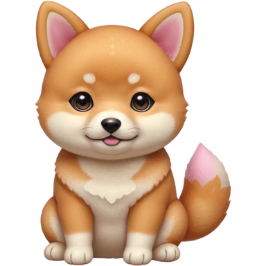 3 month old Shiba Inu puppy emoji, chubby cheeks, pink blush, sparkly eyes, tiny triangle ears, sitting pose, kawaii style, thick outline, soft shadow, transparent background, PNG sticker, high resolution emoji