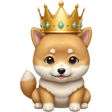 3 month old Shiba Inu puppy emoji, wearing small golden crown, cute royal expression, round body, soft fluffy fur, glossy eyes, bright pastel background, kawaii mascot style, centered composition, high quality render emoji