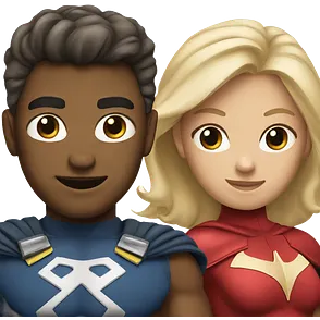 3 people one Indian male, one red haired female with glasses, one blonde haired female with glasses emoji | AI Emoji Generator