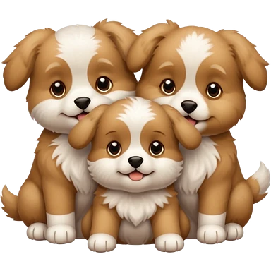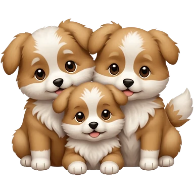 three puppies together, one puppy on top and two on the bottom, cute, playful emoji