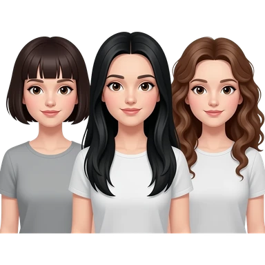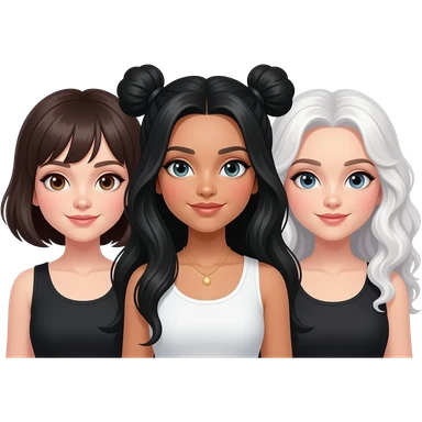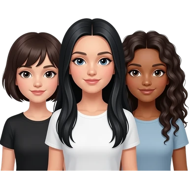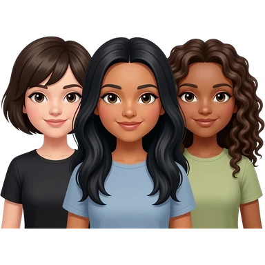 3 sisters one with short hair tan skin one with long black hair white skin and one with dark brown curly hair with white skin tone emoji | AI Emoji Generator