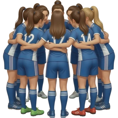 4 soccer players of the same team in blue jersey playing soccer together emoji