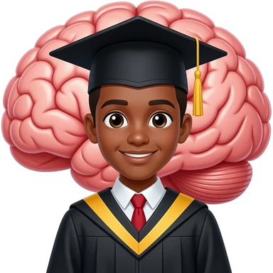black teen graduation cap and gown with brain behind him (less realistic) emoji