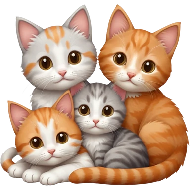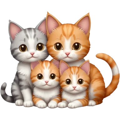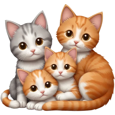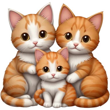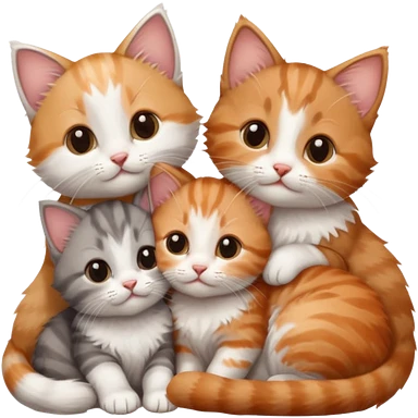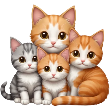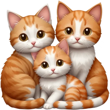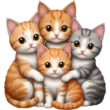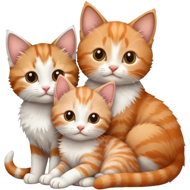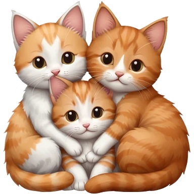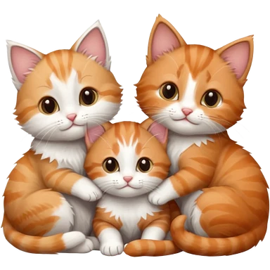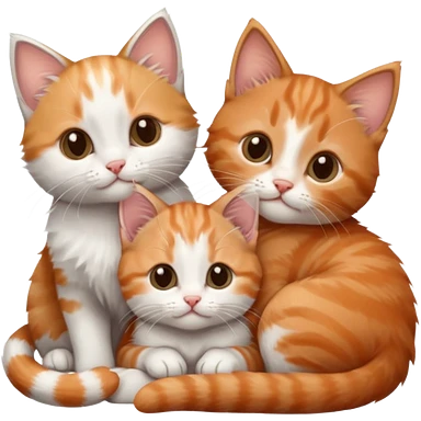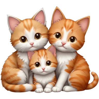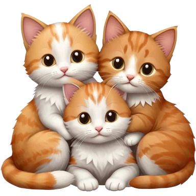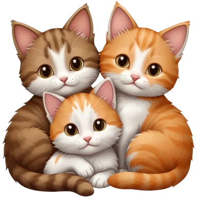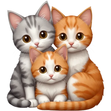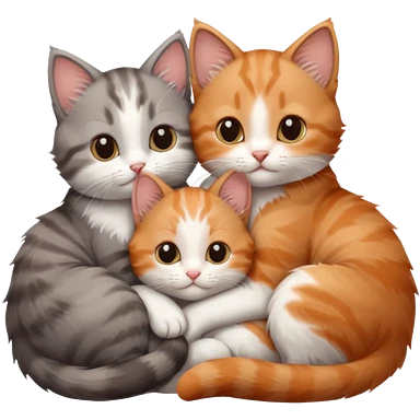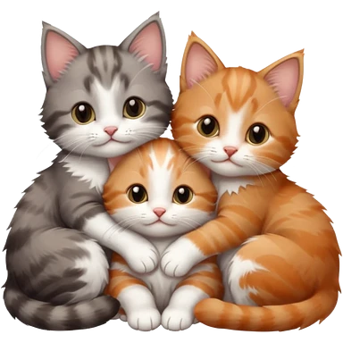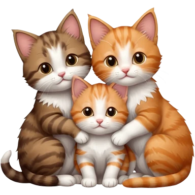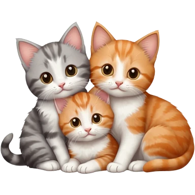 3 tiny kittens cuddling together all different colours, the first one is grey and white, the second is ginger and white and the third is brown tabby and white emoji | AI Emoji Generator