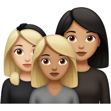 3 girls. 1 light skin with blonde hair, 1 brown skin with black hair and 1 tan skin with brown hair emoji