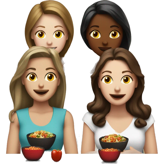 3 white brunette girls eating at chilis emoji | AI Emoji Generator