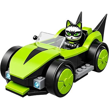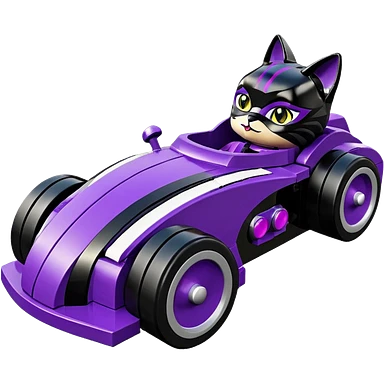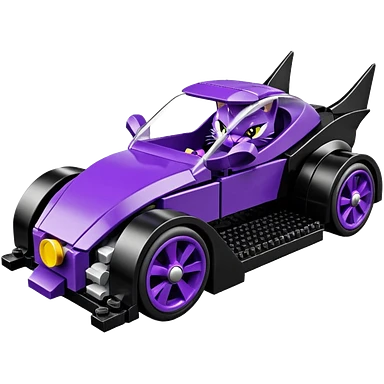 Hot rod Lego Cat Woman’s sporty futuristic pursuit mobile two seater car emoji