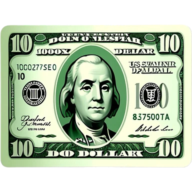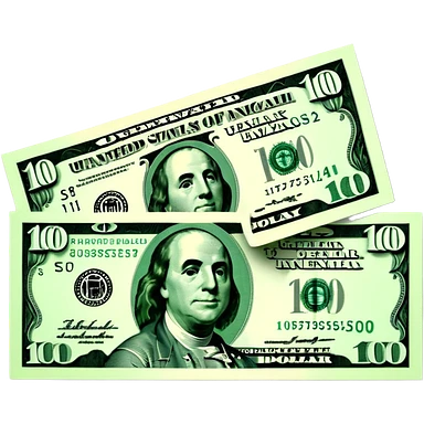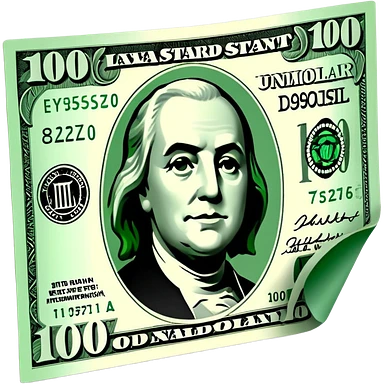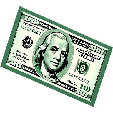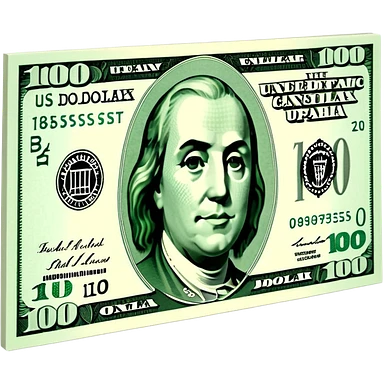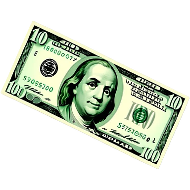 3D realistic US 100 dollar bill sticker, slight perspective, centered, clean cutout, transparent background, no text, no watermark emoji