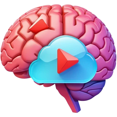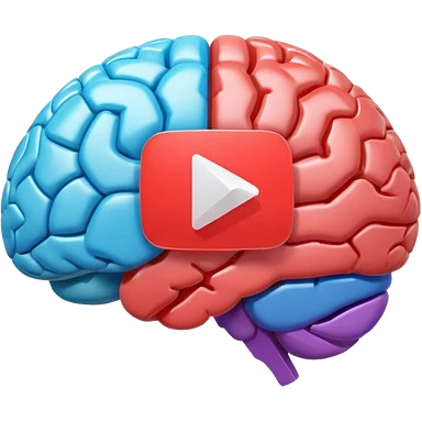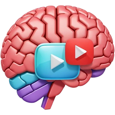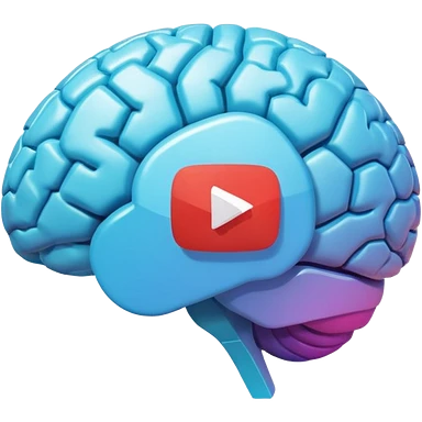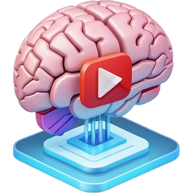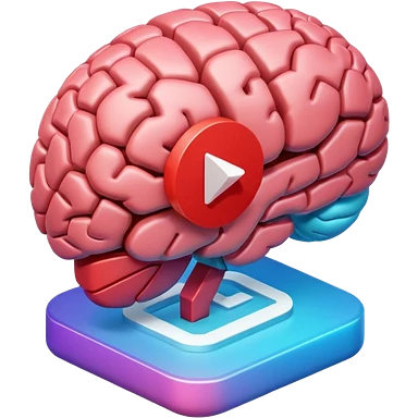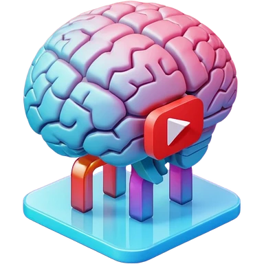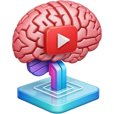 3D icon design, brain with YouTube play button symbol integrated into brain structure, glassmorphism style, soft shadows, gradient colors, modern app icon aesthetic, isometric view emoji