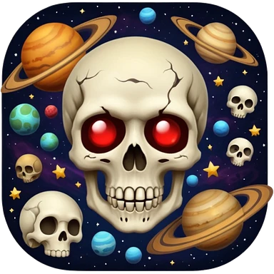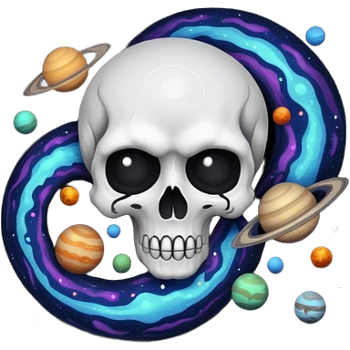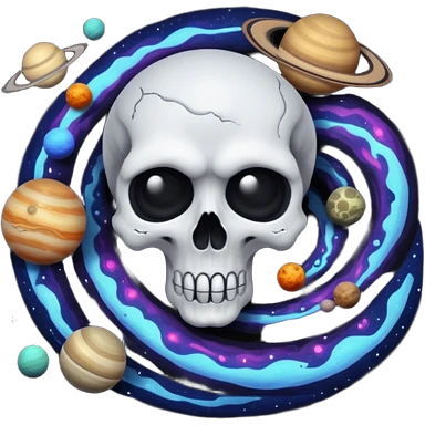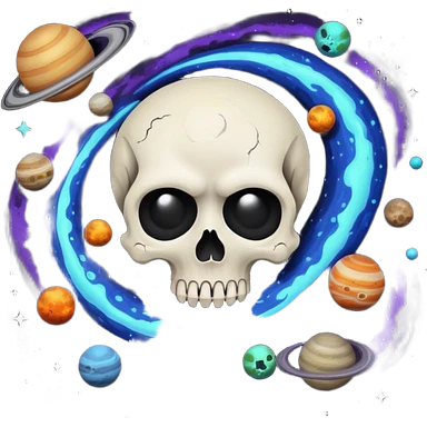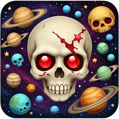 image of deep space, with planets, stars an a galaxy, in the style of your bleeding skull art. With a black background emoji