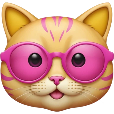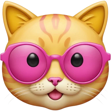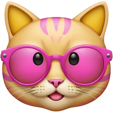 make a yellow circle face emoji with diva sun glasses that are like bright pink cat eye and like long lashes and the hand tilting the sunglaggeses dsown emoji