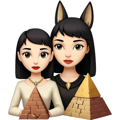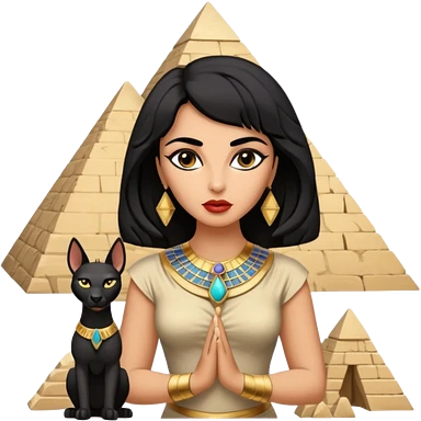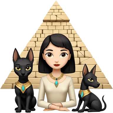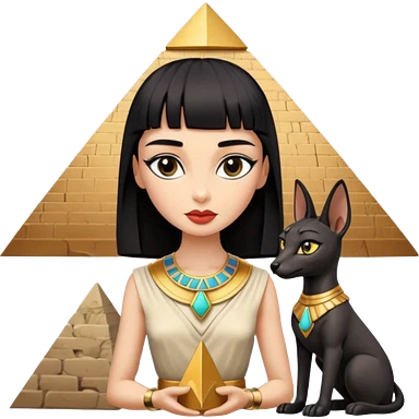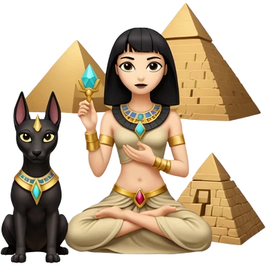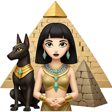 Kindly alien cleopatra Protecting spell silky black-haired tiny statuette scale female Anubis and pyramid scenery stone-age cracked irregular dwelling emoji