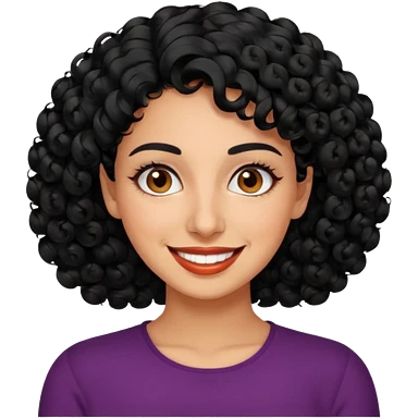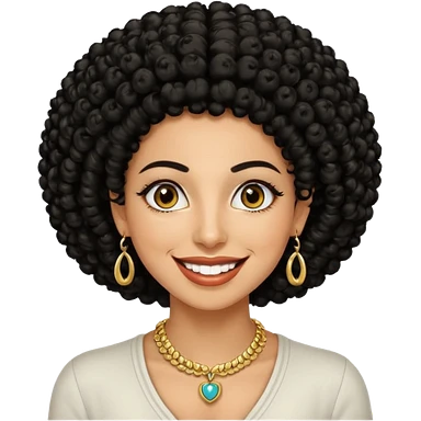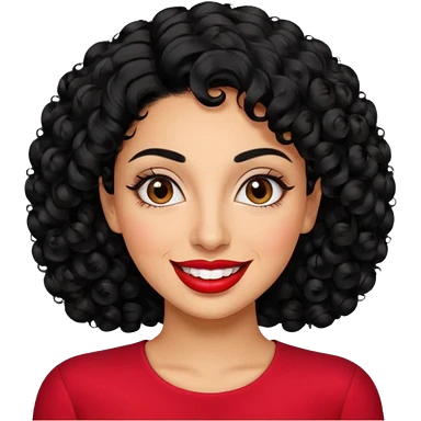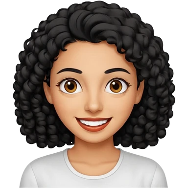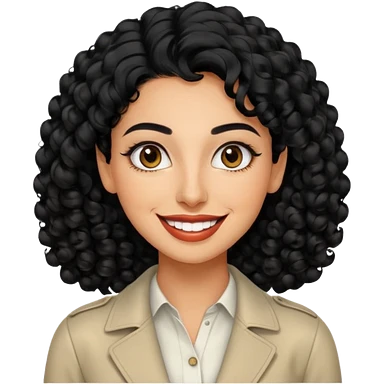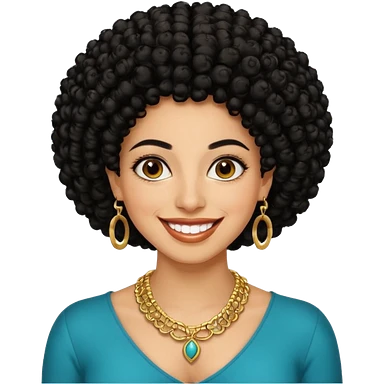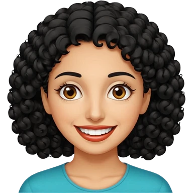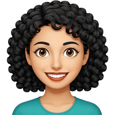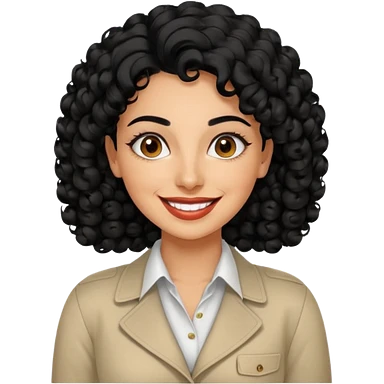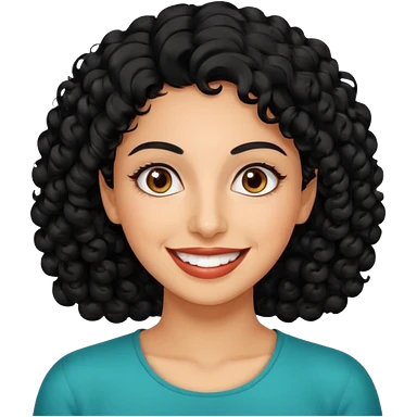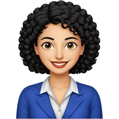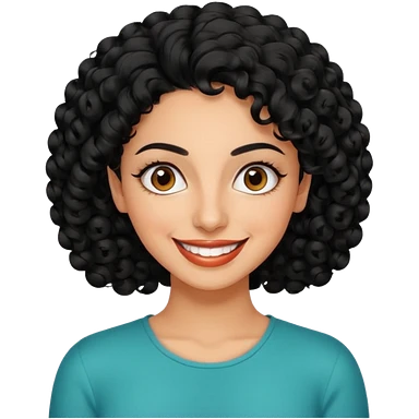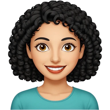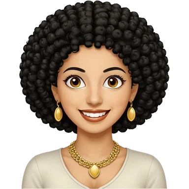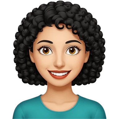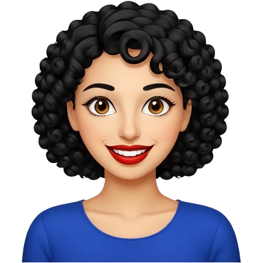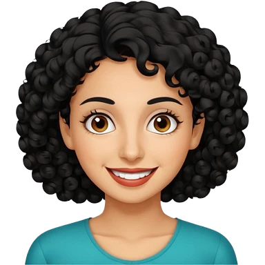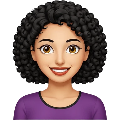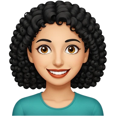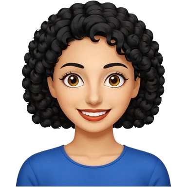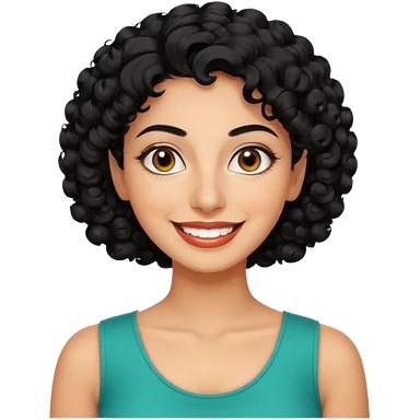 30 year old iranian woman very short curly black hair, big brown eyes, tanned skin, big smile, white teeth, pretty, stylish, shorter hair, man length hair emoji | AI Emoji Generator