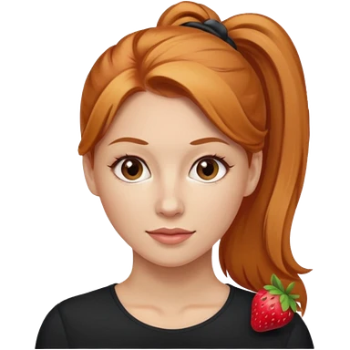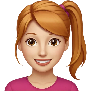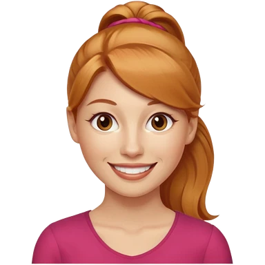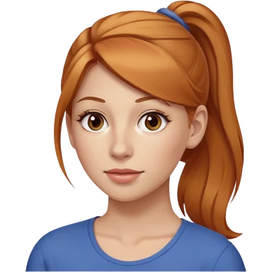 Woman 30 years old, strawberry blonde ponytail, brown eyes emoji