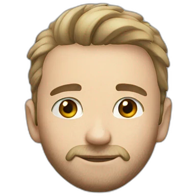 a 34 year old man with ponytail hair and stubbled beard. his skin tone is Caucasian. small eyes. looking professional. emoji