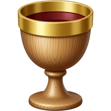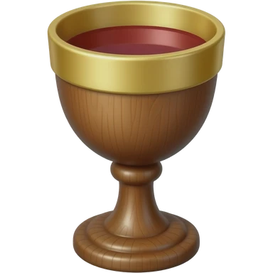 3D emoji of a wooden Eucharist chalice with a shiny gold metal rim and interior, containing red wine. Apple-style aesthetic, simple clean design, white background emoji