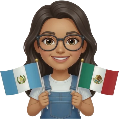3D A Hispanic girl with glasses holding a half Guatemala flag and half Mexican Flag emoji | AI Emoji Generator