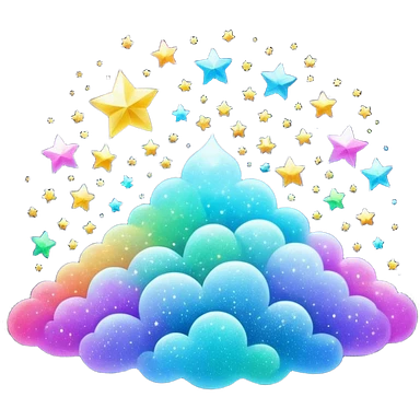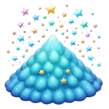 3D Apple-style emoji of scattered glitter, sparkling and shining in multiple colors. Rounded, glossy, smooth, soft shadows, white background.