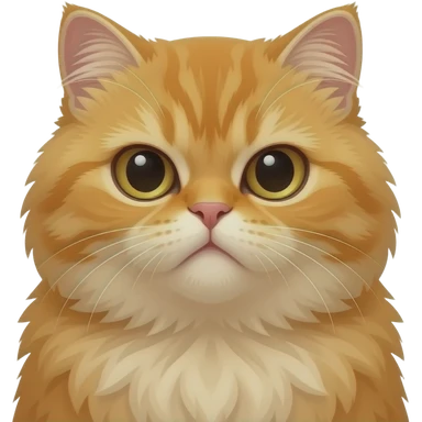 fluffy ginger persian cat, flat face, big eyes, grumpy expression, centered, 3D glossy emoji style, clean background emoji