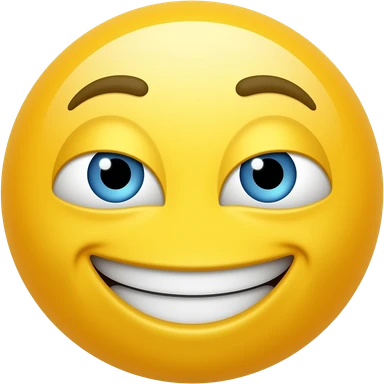 classic yellow 3D iOs emoji smirking head tilted forward suggestive eyes emoji