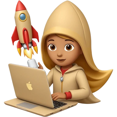 3D clay character relaxed with laptop and coffee, floating icons (envelope, heart, dollar), deep green (#0B3D2C) outfit, gold icons, cream laptop, Pixar style, transparent background emoji | AI Emoji Generator