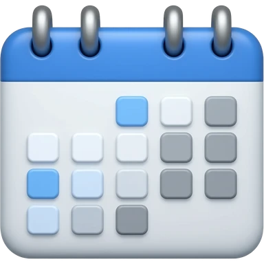 Create a 3D emoji icon of a calendar. Display 7 small uniform square shapes in a single horizontal row (representing days), with no numbers, text, or dates. Color palette: Deep blue (#00008B), Sky blue (#87CEEB), Sky white (#F5F5F5), Coastal grey (#808080). shadows 3D effect, clean, modern look. emoji