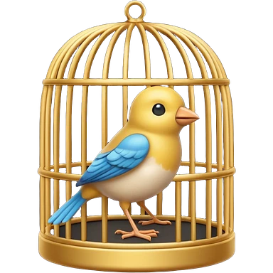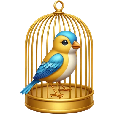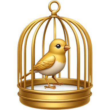 “3D emoji of a small bird inside a golden round cage, in Apple Memoji style. Soft studio lighting, glossy finish, black background, minimalistic and centered composition.”emoji