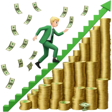 3D emoji-style bar chart showing $10K → $800 and $20K → $1,600 returns, coins and dollar signs flying upward, minimalist light background emoji | AI Emoji Generator