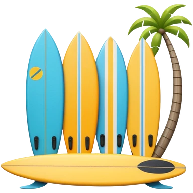 3D emoji style icon of a surf shop with surfboards, fins, and accessories on display emoji | AI Emoji Generator