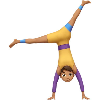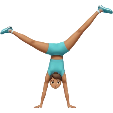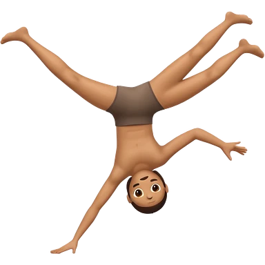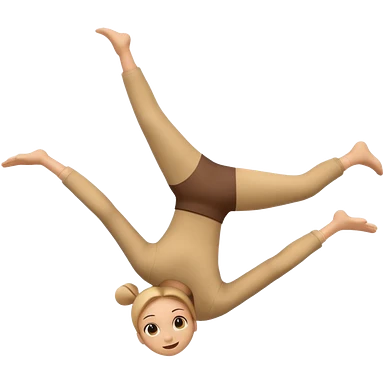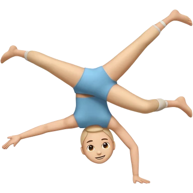 3D emoji style person doing cartwheel/flip pose, centered, soft shadow, white background. emoji