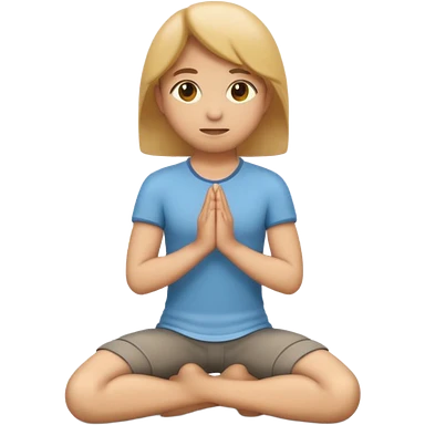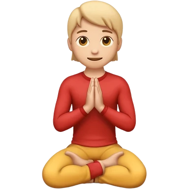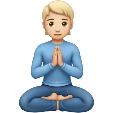 3D emoji style person sitting cross-legged meditating, calm face, centered, soft shadow, white background. emoji