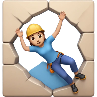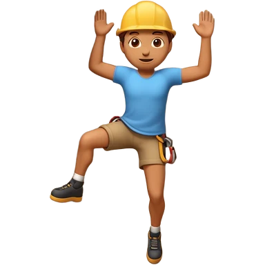 3D emoji style person climbing, wall pose, centered, soft shadow, white background. emoji