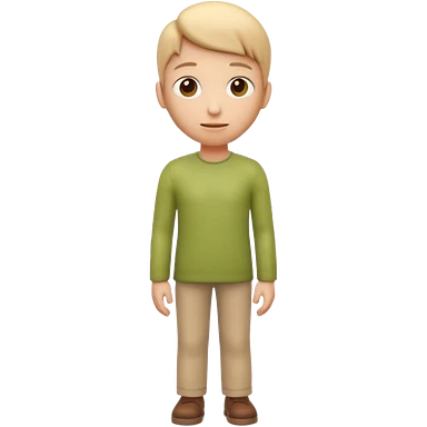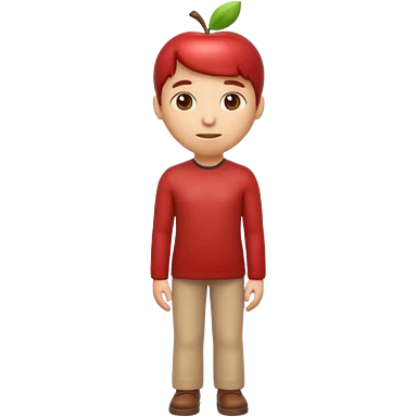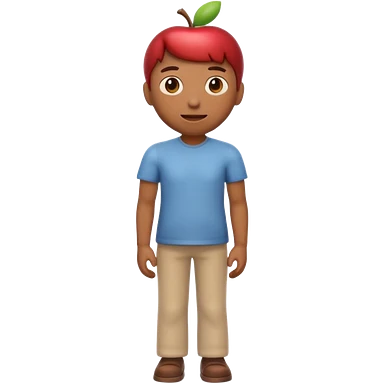 3D Apple emoji style person standing upright, neutral pose, centered, soft shadow, white background emoji