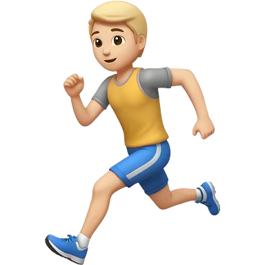 3D emoji style person running, dynamic stride, centered, soft shadow, white background. emoji