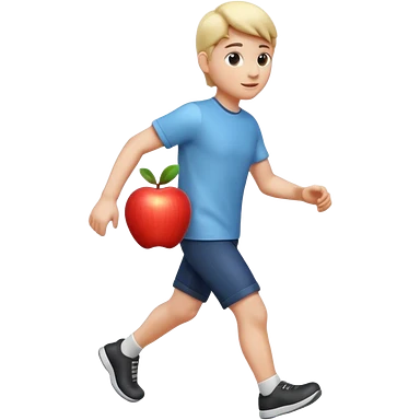 3D Apple emoji style person walking, clear stride, centered, soft shadow, white background. emoji