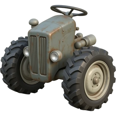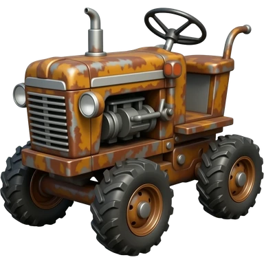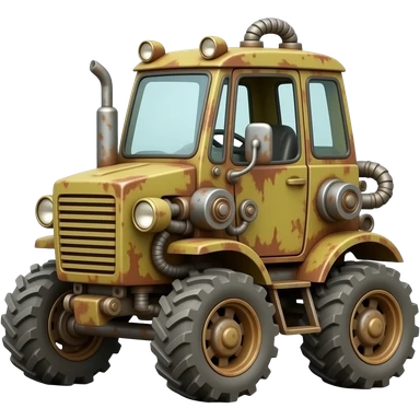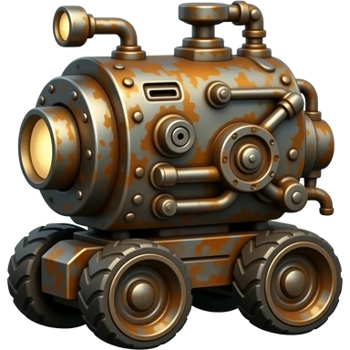rusty machine on four wheels, glowing round headlights, gray metal with rust, soft lighting, clean background emoji