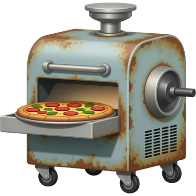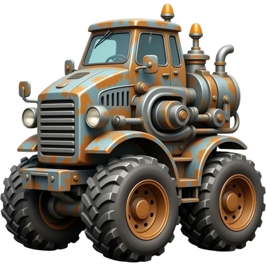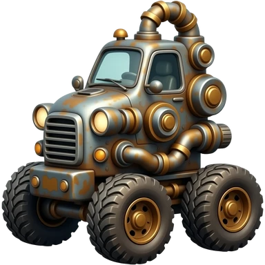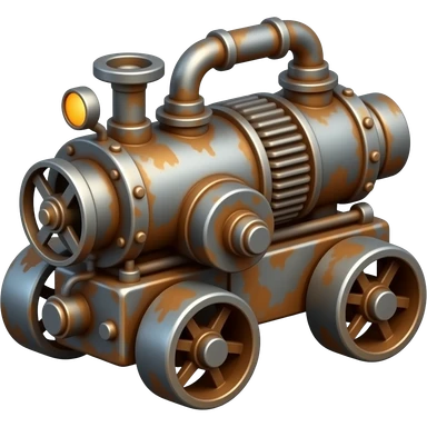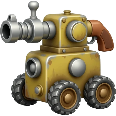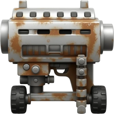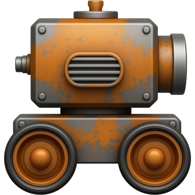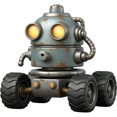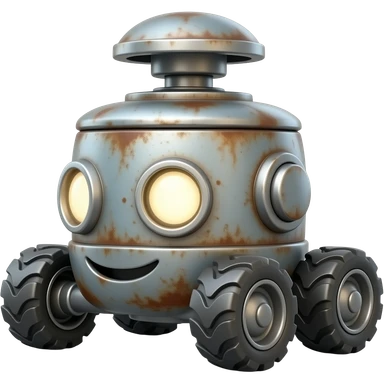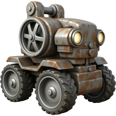 3D emoji-style rusty machine on four wheels, glowing round headlights, toy-like, gray metal with rust, soft lighting, clean background emoji | AI Emoji Generator