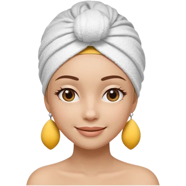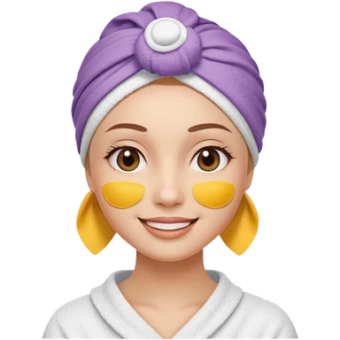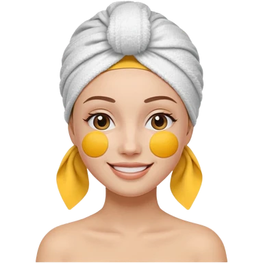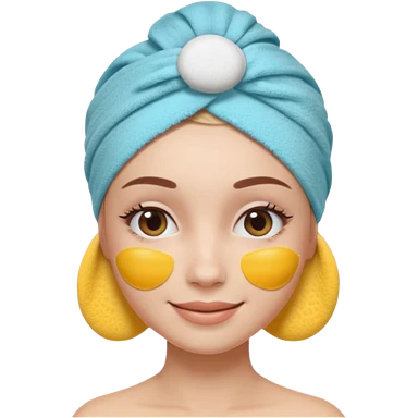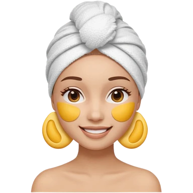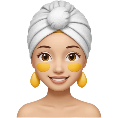 3D emoji style woman with towel head wrap, under-eye patches, smiling softly, clean girl skincare aesthetic, soft studio lighting, smooth skin texture, minimalist beige background, high resolution, PNG emoji | AI Emoji Generator