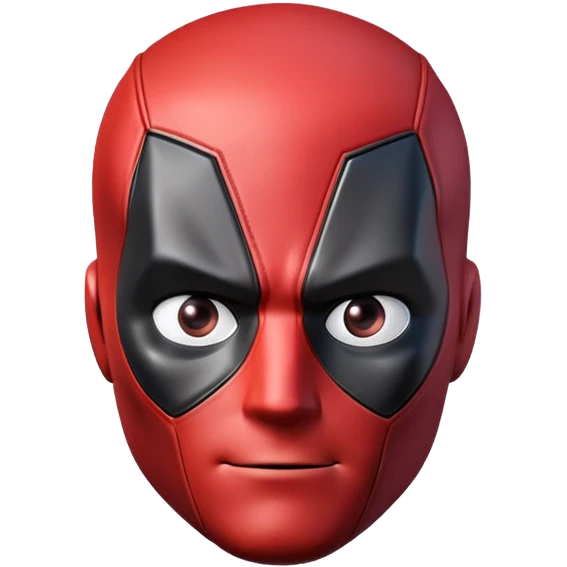 3D floating style face emoji of the character 'Deadpool' from 'Marvel Movies', looking straight ahead. equal lighting, soft light, color correction, sharpening, isolated on solid white background.