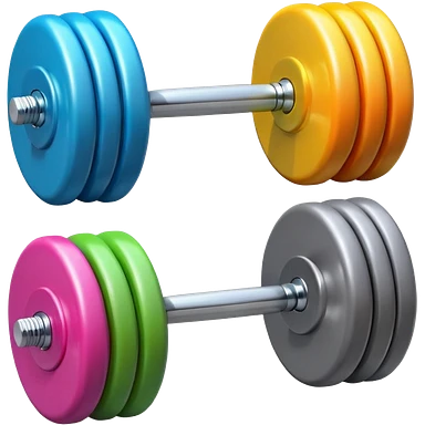 “3D glossy emoji of a dumbbell, bright colors, shiny plastic texture, soft reflections, cute rounded style, high detail, fitness icon, clean white background.”