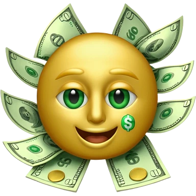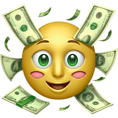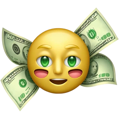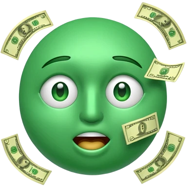 3D glossy money emoji, dollar-sign eyes, cash flying out of mouth, seamless loop, centered, transparent background emoji